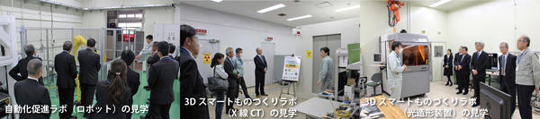 まず、当センターの概要説明として各部の紹介や公設試としての役割、企業支援の取組や近年の研究開発成果、またオープンラボについて紹介しました。続いて、AI、IoT、ロボットなどを活用する「自動化促進ラボ」、産業用X線CT、3Dプリンターなどを活用する「3Dスマートものづくりラボ」を見学いただきました。その際、様々な質問をいただくなど、当センターの取組に興味をもっていただきました。